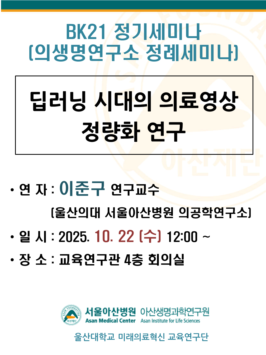 의생명연구소 정례세미나 (10/22, 수)