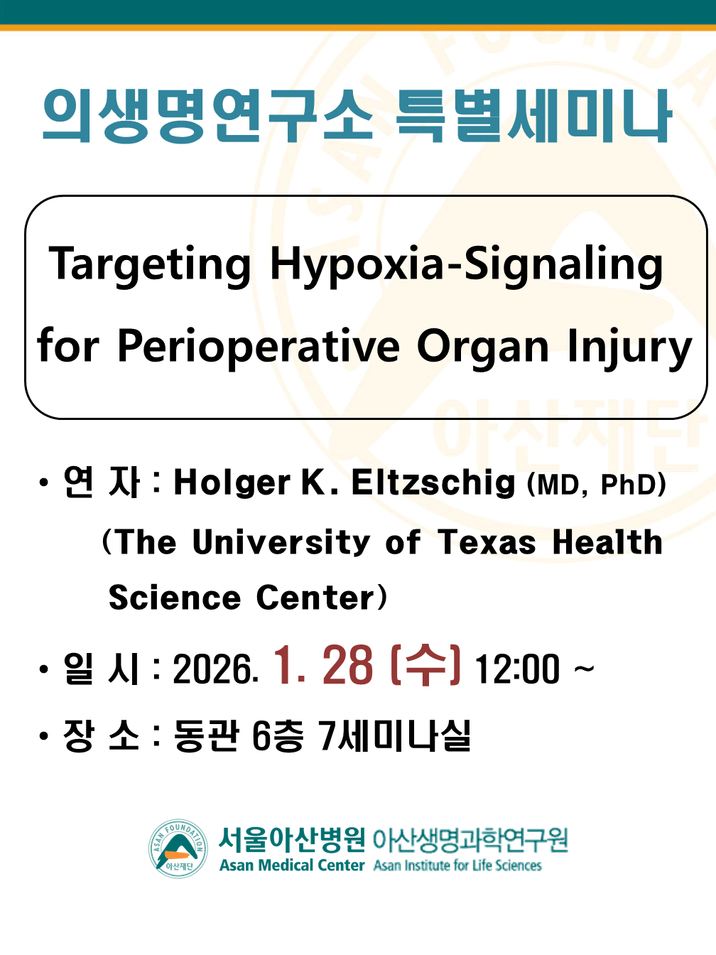 의생명연구소 특별세미나 (1/28, 수)