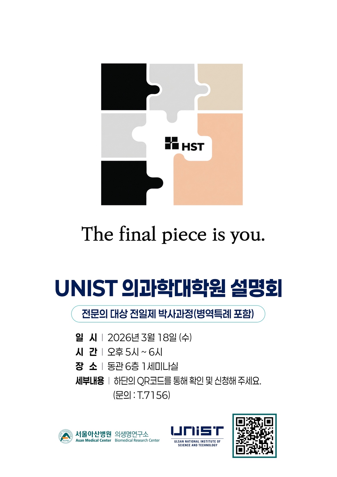 의생명연구소-UNIST 의과학대학원 설명회 (3/18,수)