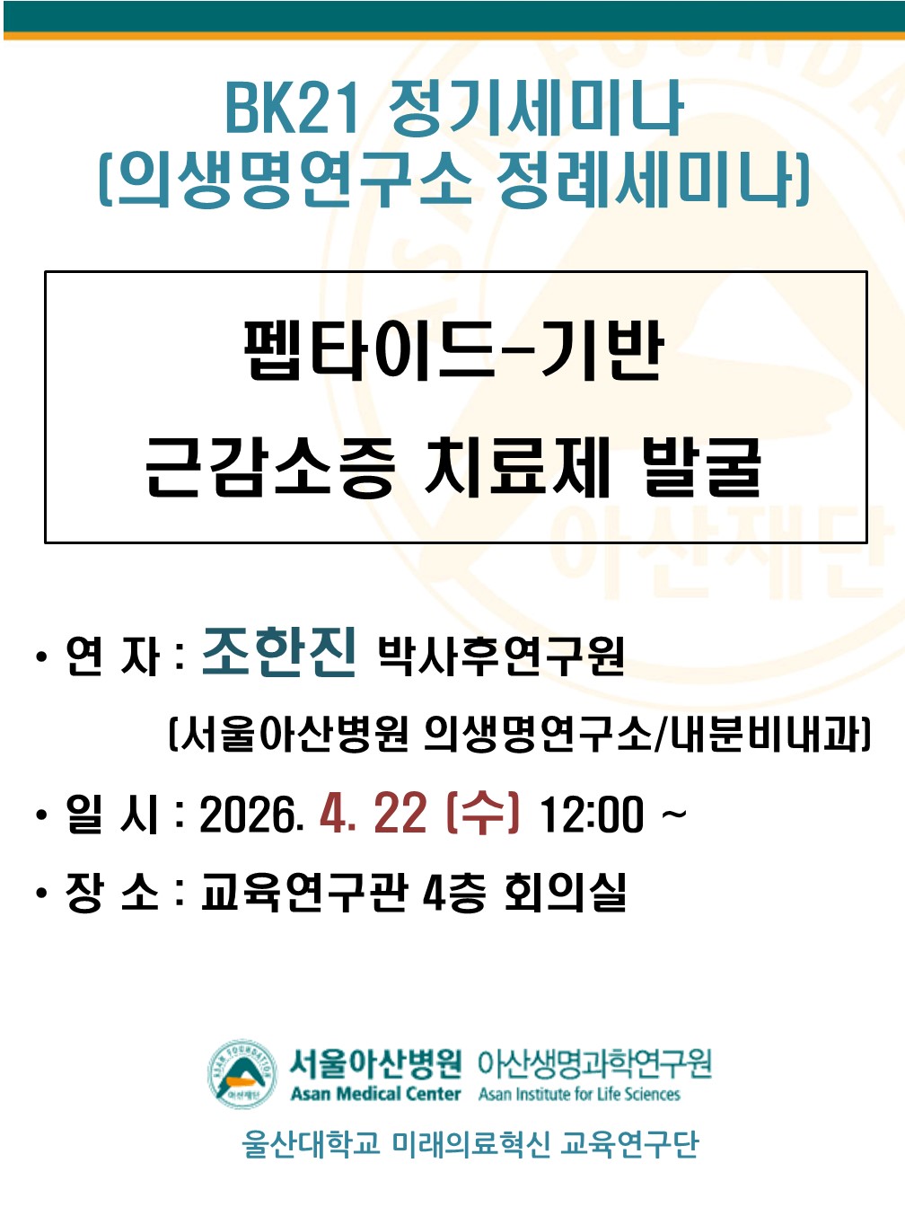 의생명연구소 정례세미나/BK21세미나 (4.22,수)