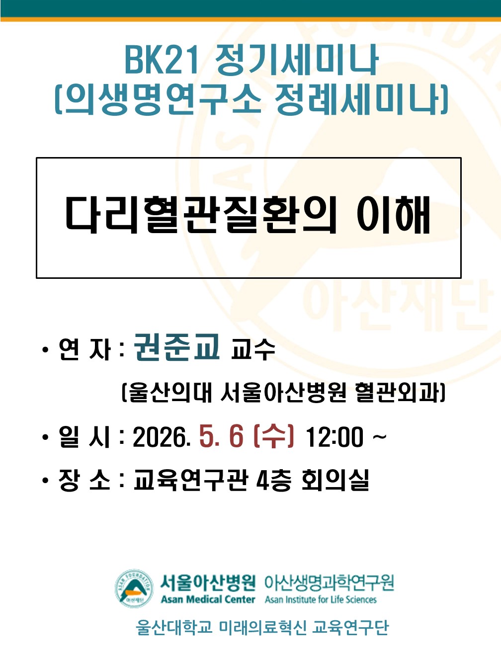 의생명연구소 정례세미나/BK21세미나 (5.06, 수)